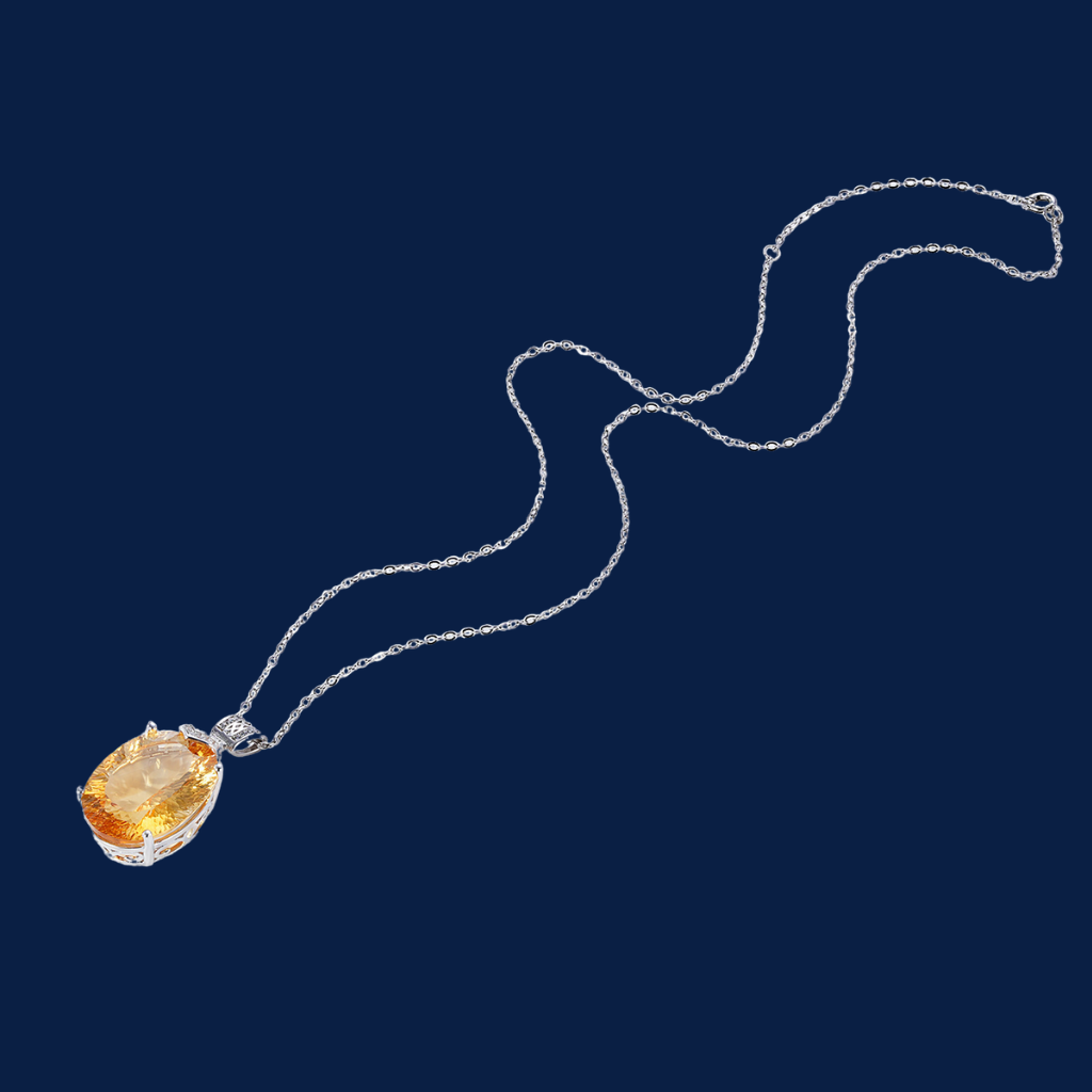 Luxury Oval Citrine Pendant Necklace in Sterling Silver with Diamond Accents – Elegant Women’s Jewelry