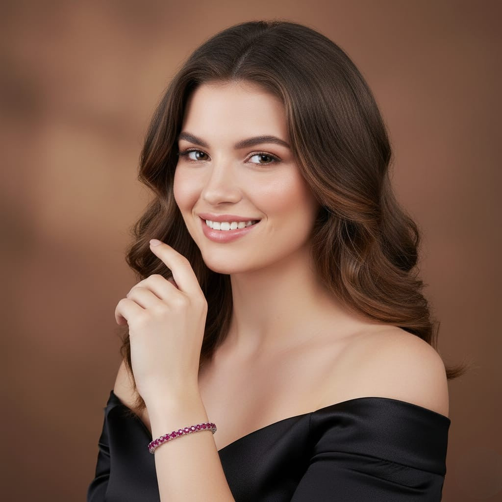 Add a pop of color and timeless sophistication to your jewelry collection with this ruby tennis bracelet, a perfect blend of elegance and modern style. Crafted in 925 sterling silver, it features a continuous line of round-cut ruby red stones, each meticulously set to maximize brilliance and vibrancy. The sleek and lightweight design makes it ideal for both daily wear and special occasions.